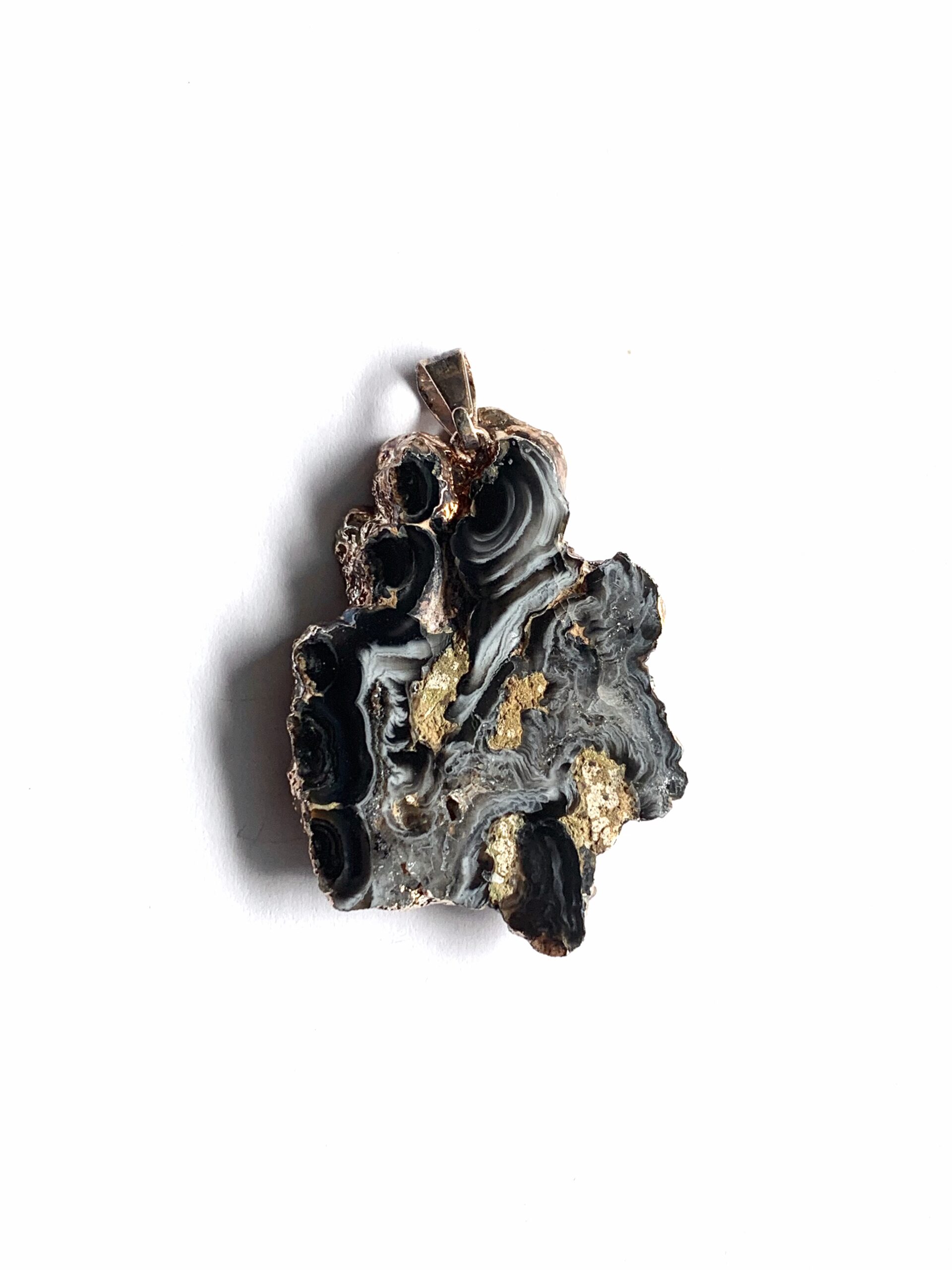 Naturbelassener Achat mit auskristallisierter Öffnung. Der Anhänger ist nickelfrei.