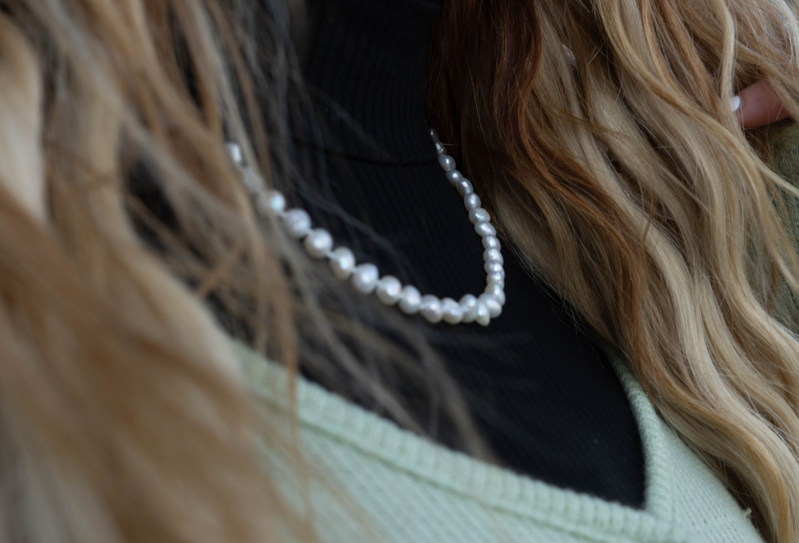 Geknüpfte Perlenkette mit 925-Silberverschluss.