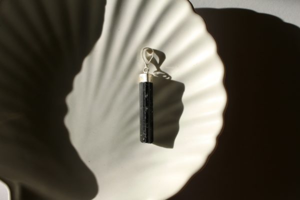 Natürlich gewachsene Turmalin-Spitze in 925-Silber gefasst.